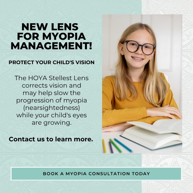 Not to worry if your child is nervous for their eye exam. Our optometrists are experienced with children and can put them at ease. Many kids even think their eye exams are fun! And, if your child does need glasses, we offer a wide selection of colors and styles that will make them smile—in durable materials that will make you smile too! Our practice also offers solutions that can slow the progression of myopia.